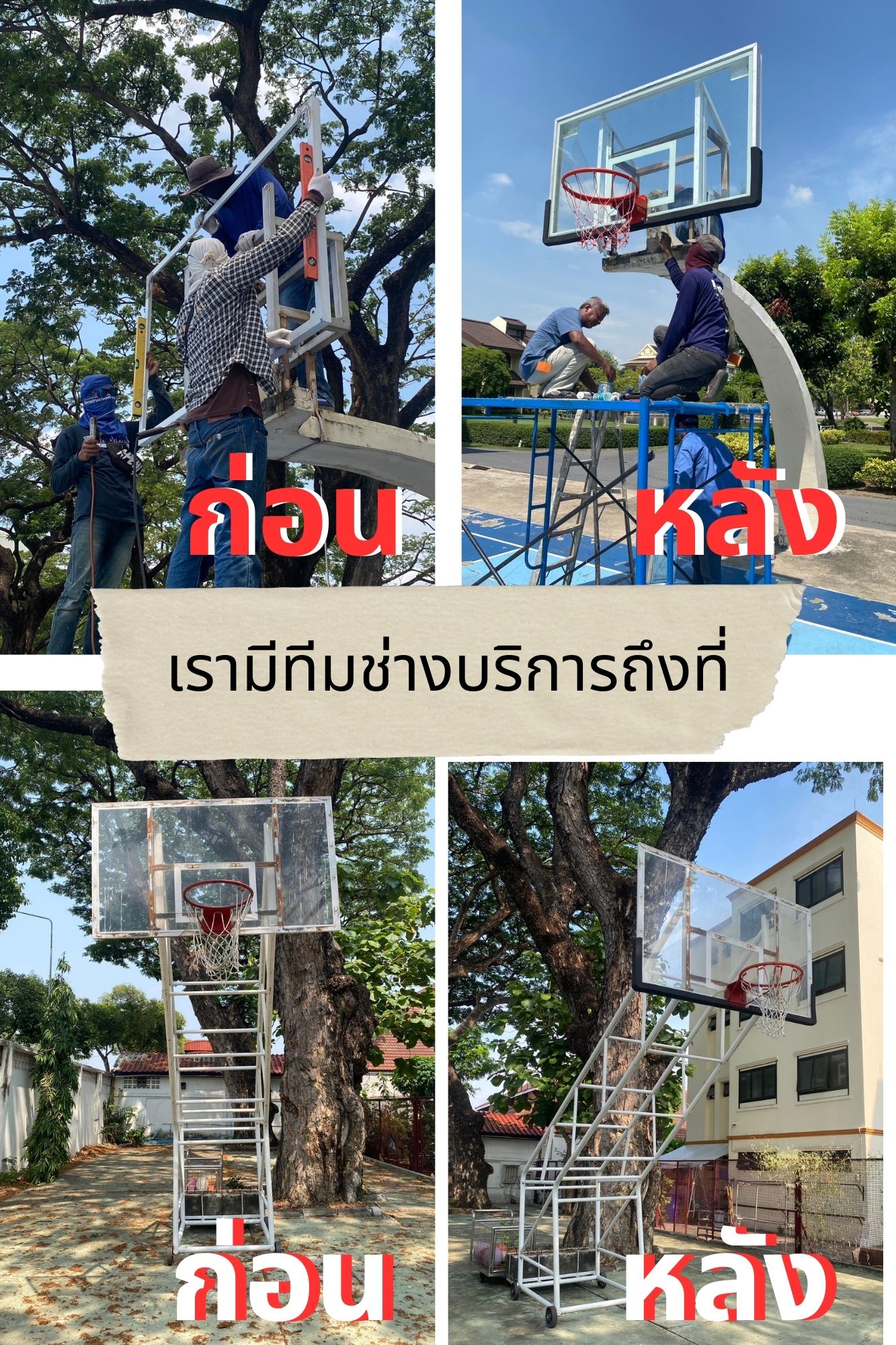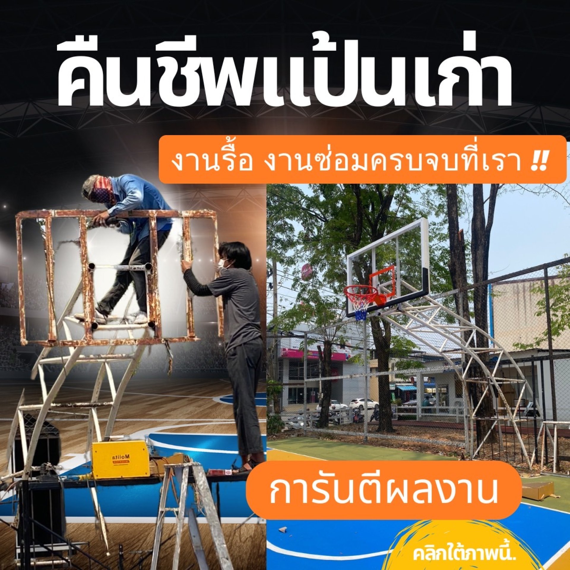 บริการติดตั้งแป้นบาส และซ่อมบำรุง เปลี่ยนหน้าแป้น